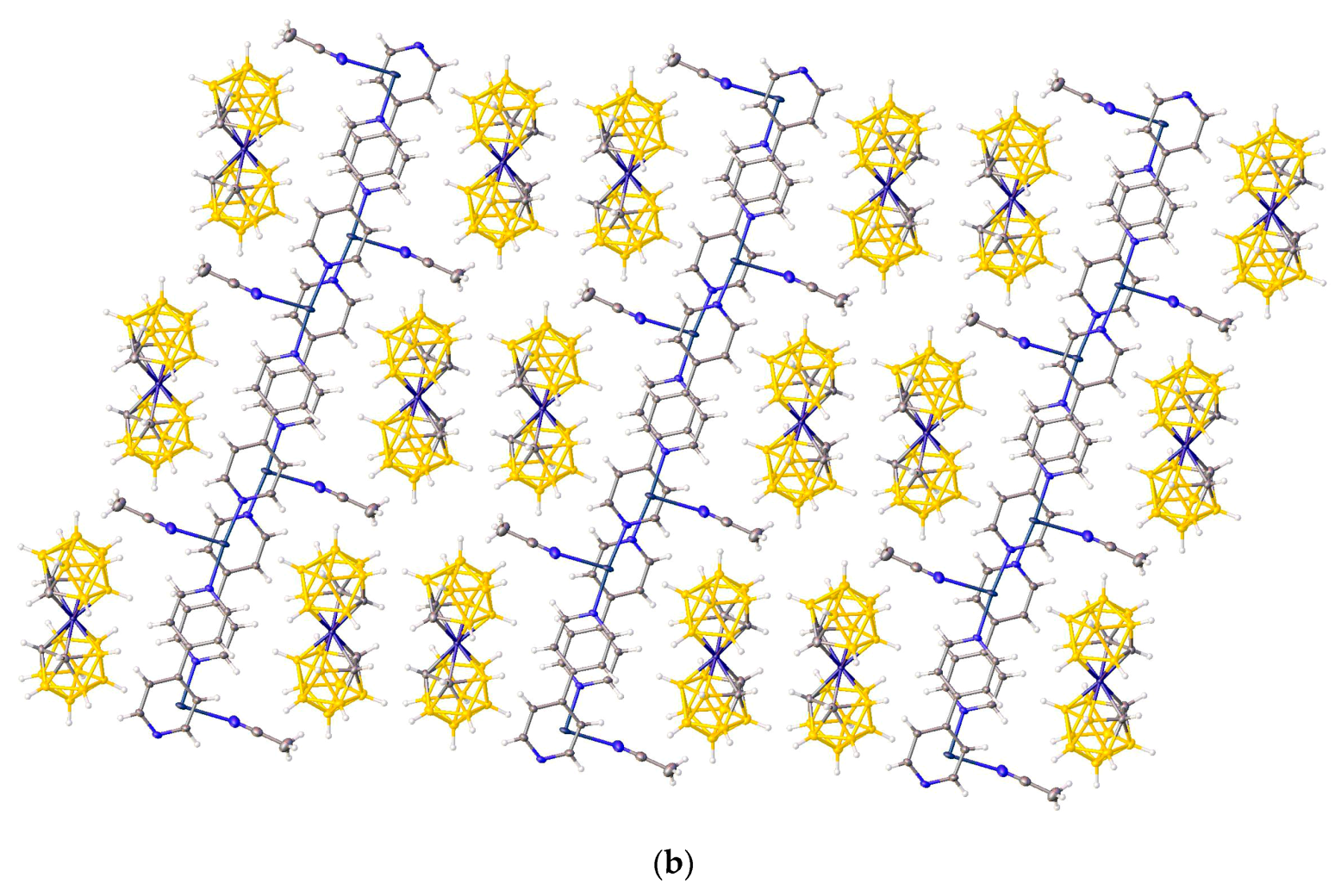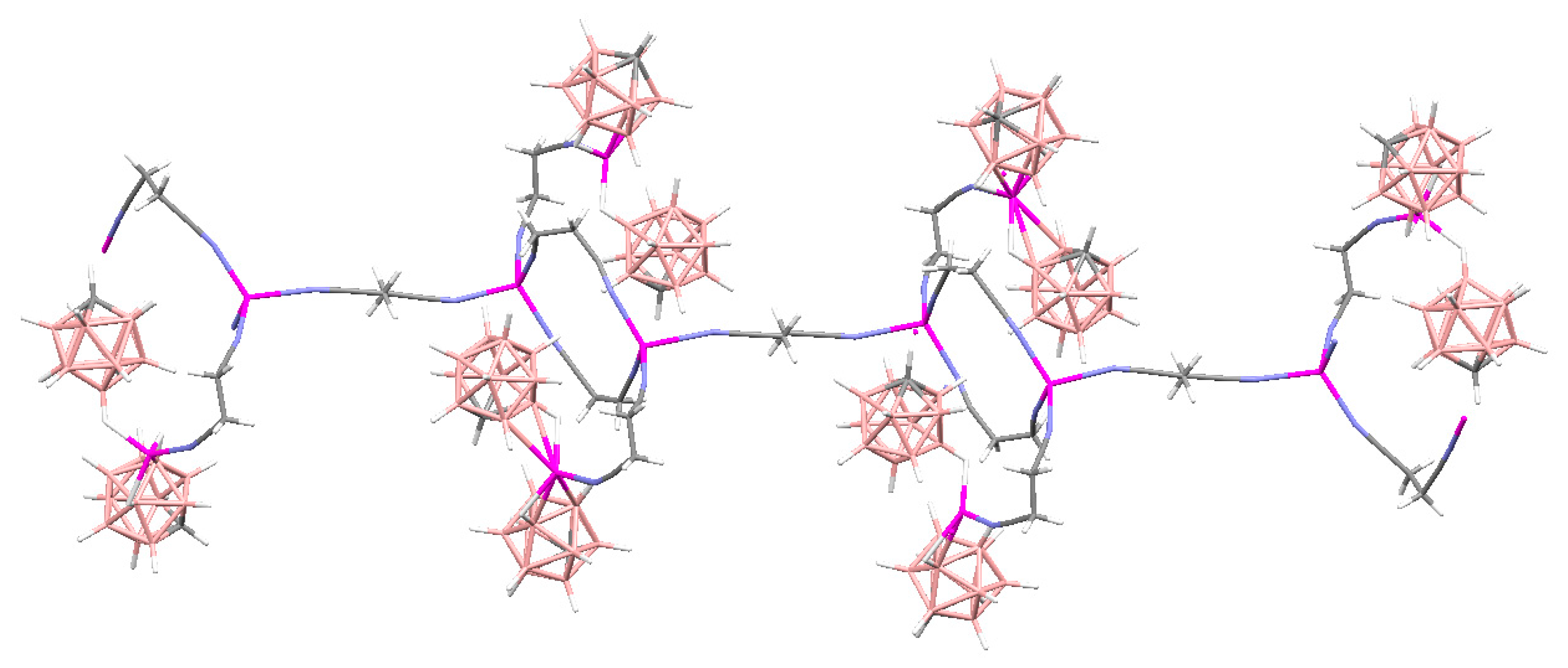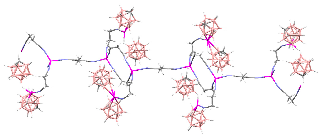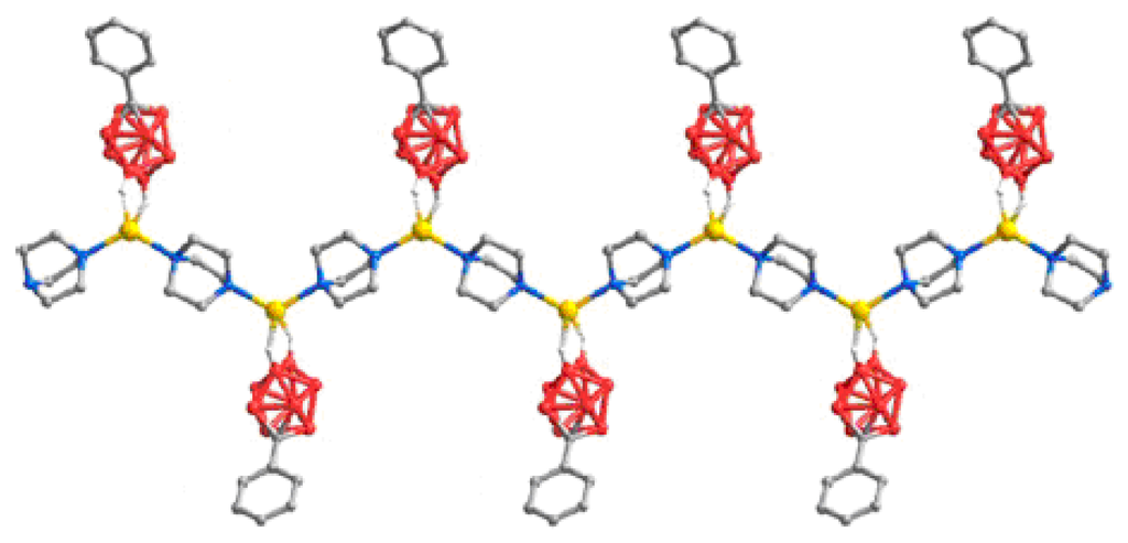 - Westcott, A.; Whitford, N.; Hardie, M.J. Coordination polymers with carborane anions: Silver dinitrile complexes. Inorg. Chem. 2004, 43, 3663–3672. [Google Scholar] [CrossRef] [PubMed]