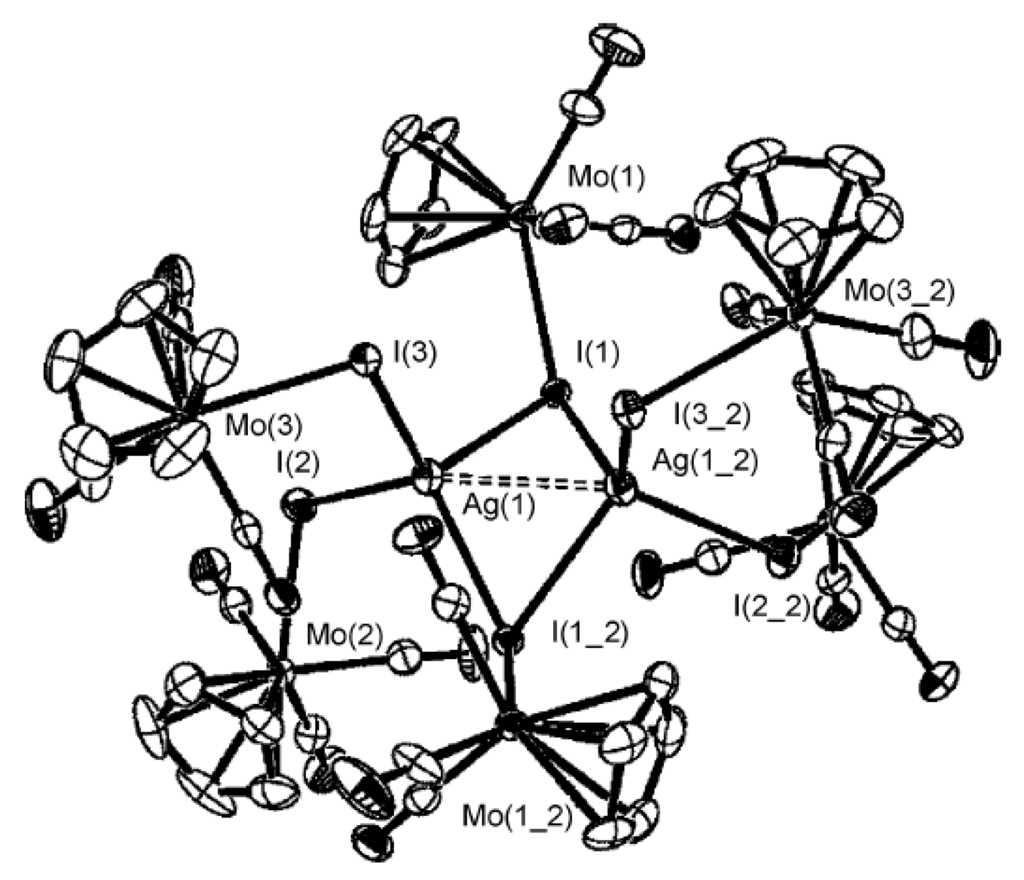 - Patmore, N.J.; Mahon, M.F.; Steed, J.W.; Weller, A.S. Synthesis and characterization of {Mo(η-L)(CO)3}+ (η-L = C5H5 or C5Me5) fragments ligated with [CB11H12]− and derivatives. Isolation and structural characterization of an intermediate in a silver salt metathesis reaction. J. Chem. Soc. Dalton Trans. 2001, 277–283. [Google Scholar] [CrossRef]