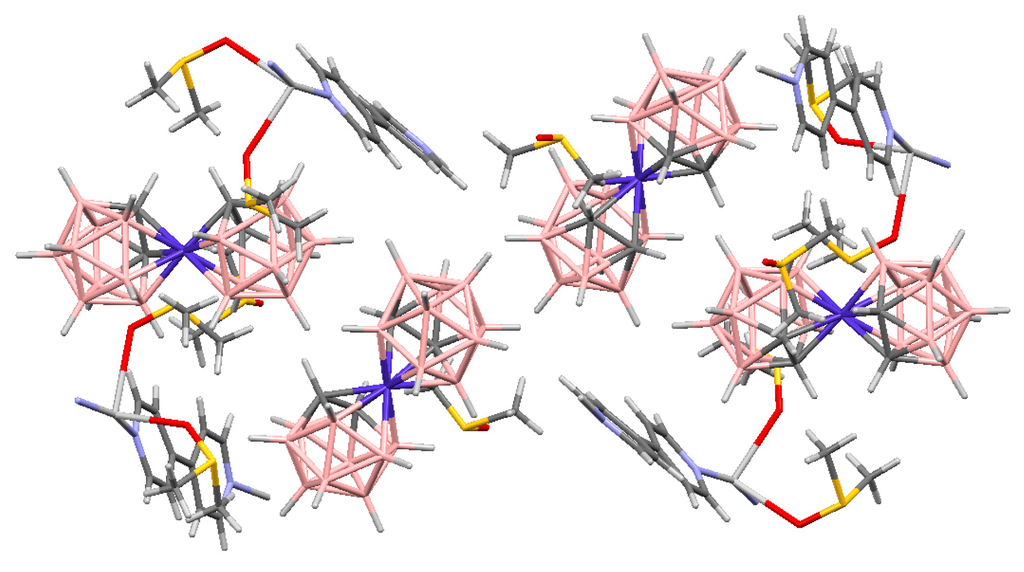 - Rojo, I.; Teixidor, F.; Viňas, C.; Kivekäs, R.; Sillanpää, R. Synthesis and coordinating ability of an anionic cobaltabisdicarbollide ligand geometrically analogous to BINAP. Chem. Eur. J. 2004, 10, 5376–5385. [Google Scholar] [CrossRef] [PubMed]
