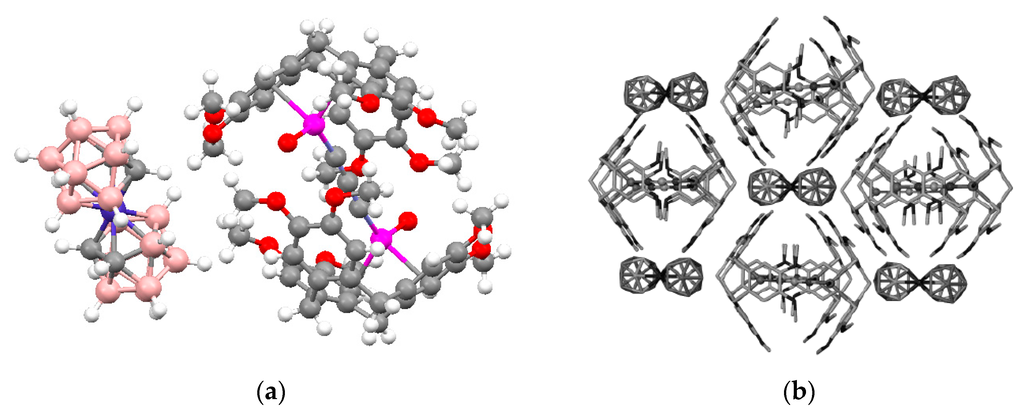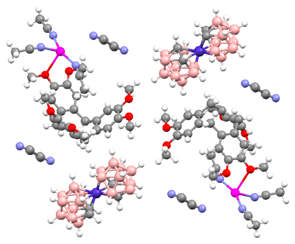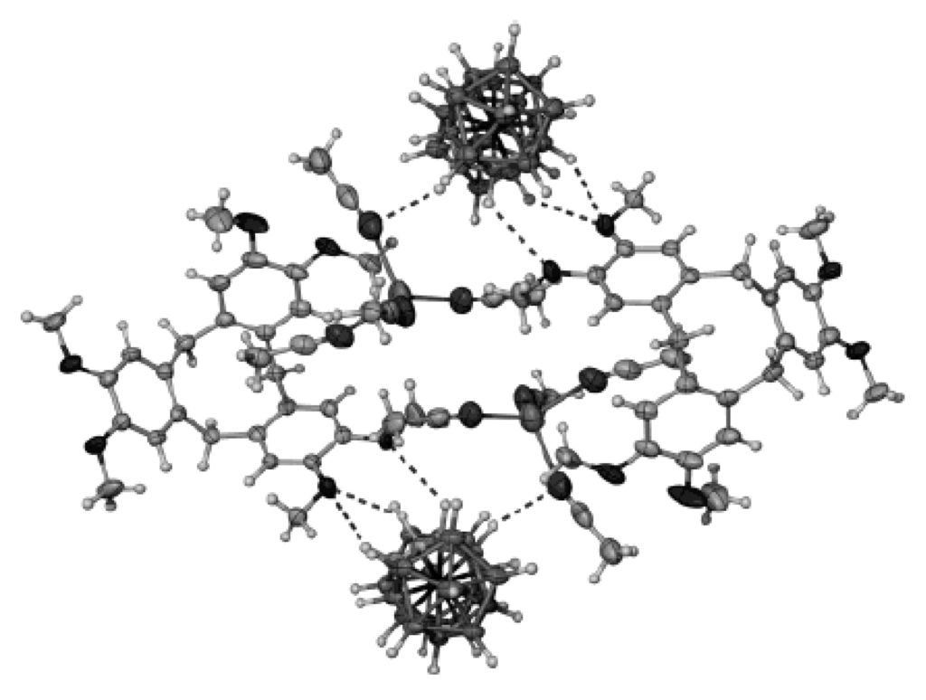 - Ahmad, R.; Hardie, M.J. Variable Ag(I) coordination modes in silver cobalt(III) bis(dicarbollide) supramolecular assemblies with cyclotriveratrylene host molecules. Cryst. Growth Des. 2003, 3, 493–499. [Google Scholar] [CrossRef]