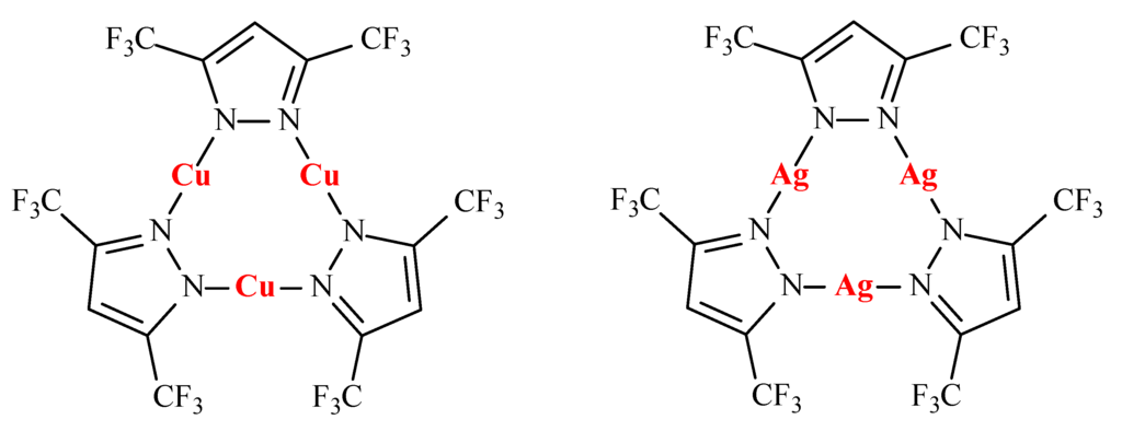 - Tsupreva, V.N.; Filippov, O.A.; Titov, A.A.; Krylova, A.I.; Sivaev, I.B.; Bregadze, V.I.; Epstein, L.M.; Shubina, E.S. Interaction of polyhedral boron hydride anions [B10H10]2− and [B12H12]2− with cyclic copper and silver 3,5-bis(trifluoromethyl)pyrazolate complexes. J. Organomet. Chem. 2009, 694, 1704–1707. [Google Scholar] [CrossRef]