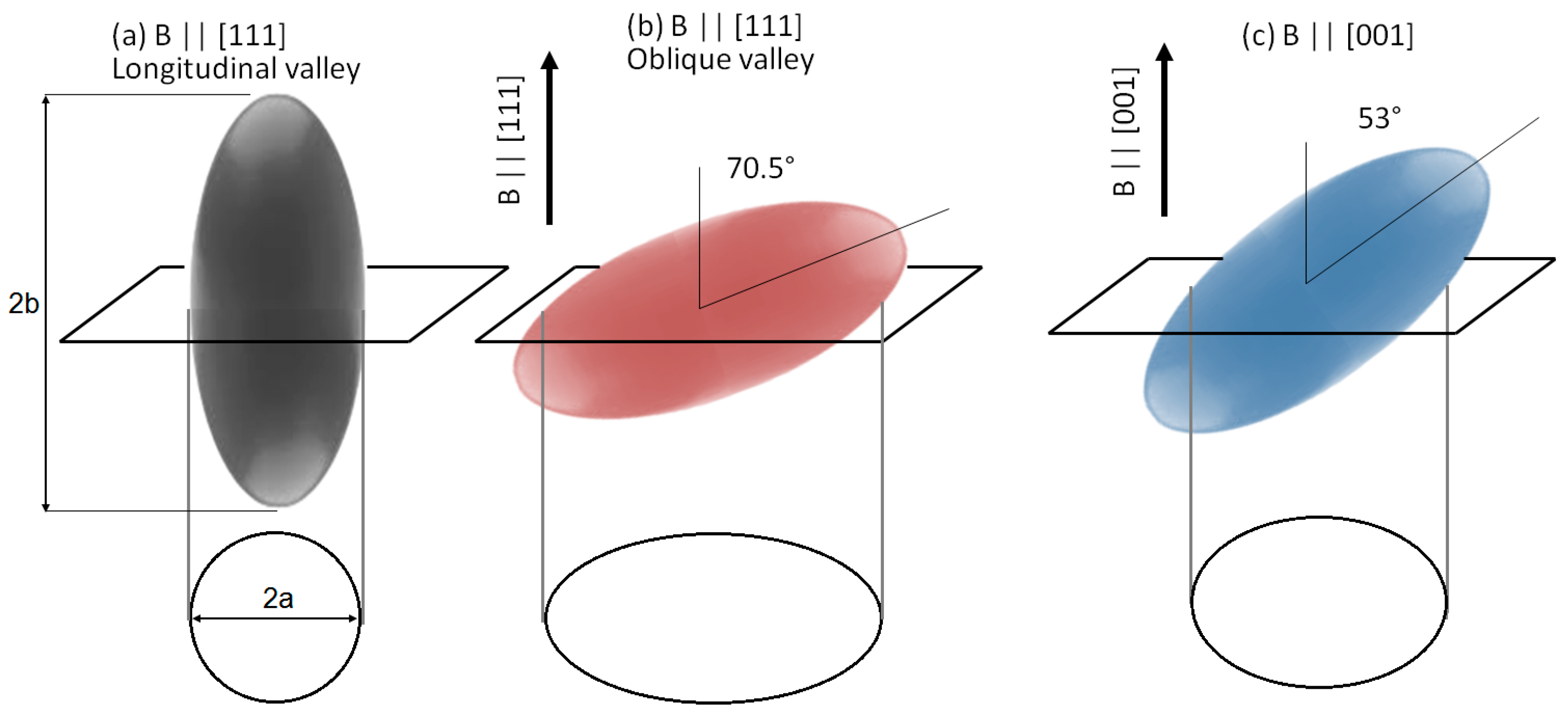 Figure 2a). A magnetic field will quantize orbits in the plane perpendicular to the [111] direction, leading to a 2D quantized Fermi surface that is circular and has a diameter equal to the minor axis “2a” of the ellipsoid (