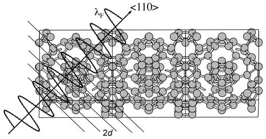 Let us consider the situation, in which an electron with the wavelength λF is propagating perpendicularly to a given set of lattice planes in the real space. The interference phenomenon occurs when coincides with the lattice spacing 2d. This is schematically illustrated in Figure 4. When the condition is fulfilled, the stationary wave of either sine-type or cosine-type is formed, resulting in opening a gap. The interference condition above is alternatively written as