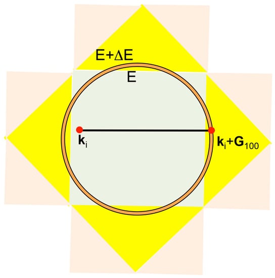 In the present article, both electron wave vector and reciprocal lattice vector in the reciprocal space are expressed in units of for a cubic lattice with the lattice constant a [11,12,13,14,15,16,17,18,19,20]. Hence, the reciprocal lattice vector is simply given by , where integers h, k and l represent the set of Miller indices and holds.