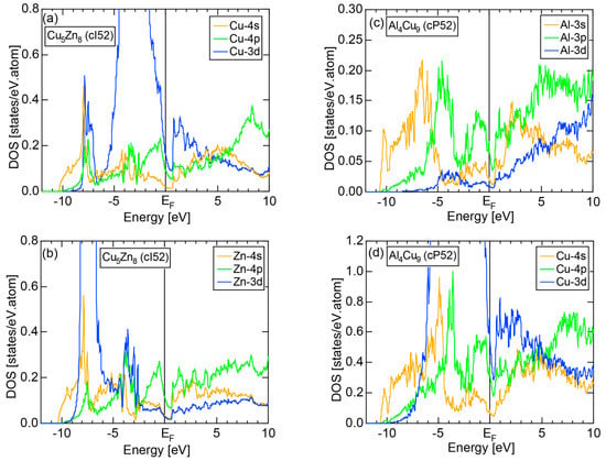 - Asahi, R.; Sato, H.; Takeuchi, T.; Mizutani, U. Verification of Hume-Rothery electron concentration rule in Cu5Zn8 and Cu9Al4γ brasses by ab initio FLAPW band calculations. Phys. Rev. B 2005, 71, 165103. [Google Scholar] [CrossRef]