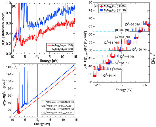 Second, we construct the dispersion relation for electrons, from which the square of the Fermi diameter and e/a can be deduced from Equation (2). The dispersion relation thus constructed is called the Hume-Rothery plot, since it allows us to determine e/a appearing in the Hume-Rothery electron concentration rule. Here again the use of the center of gravity method is mandatory to circumvent the d-band anomaly across the Fermi level. More details will be discussed in Section 2.5.