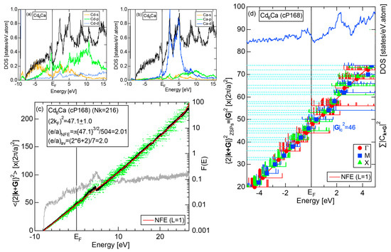 - Mizutani, U.; Inukai, M.; Sato, H.; Nozawa, K.; Zijlstra, E.S. Hume-Rothery Stabilization Mechanism in Tsai-Type Cd6Ca Approximant and e/a Determination of Ca and Cd Elements in the Periodic Table. In Aperiodic Crystals; Schmid, S., Withers, R.L., Lifshitz, R., Eds.; Springer: Heidelberg, Germany, 2013; Chapter 14; pp. 101–107. [Google Scholar]