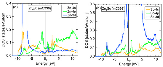 - Mizutani, U.; Inukai, M.; Sato, H.; Zijlstra, E.S. Hume-Rothery stabilization mechanism in low-temperature phase Zn6Sc approximant and e/a determination of Sc and Y in M-Sc and M-Y (M = Zn, Cd and Al) alloy systems. In Aperiodic Crystals; Schmid, S., Withers, R.L., Lifshitz, R., Eds.; Springer: New York, NY, USA, 2013; Chapter 15. [Google Scholar]