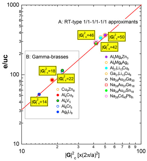 - Mizutani, U.; Inukai, M.; Sato, H.; Zijlstra, E.S. Hume-Rothery stabilization mechanism and e/a determination for RT- and MI-type 1/1-1/1-1/1 approximants studied by FLAPW-Fourier analysis. Chem. Soc. Rev. 2012, 41, 6799–6820. [Google Scholar] [CrossRef] [PubMed]