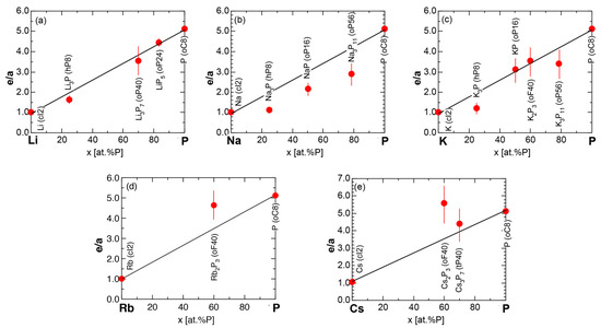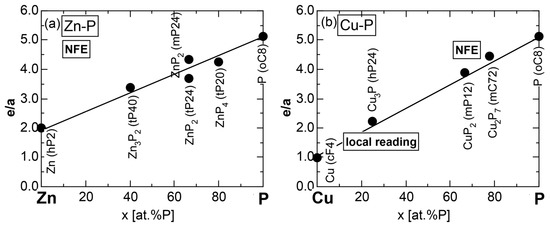 - Mizutani, U.; Sato, H.; Inukai, M.; Nishino, Y.; Zijlstra, E.S. Electrons per atom ratio determination and Hume-Rothery electron concentration rule for P-based polar compounds studied by FLAPW-Fourier calculations. Inorg. Chem. 2015, 54, 930–946. [Google Scholar] [CrossRef] [PubMed]