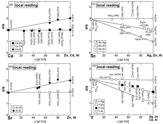 - Mizutani, U.; Sato, H.; Inukai, M.; Zijlstra, E.S. e/a determination for 4d- and 5d-transition metal elements and their intermetallic compounds with Mg, Al, Zn, Cd and In. Philos. Mag. 2013, 93, 3353–3390. [Google Scholar] [CrossRef]