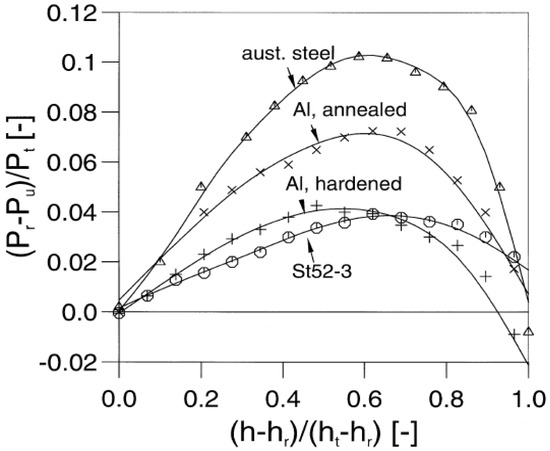 Huber and Tsakmakis [22] proposed that nanoindentation tests can be used to identify effects of kinematic hardening on the material response. They also indicated that the identification may rely on the measurement of the opening of the hysteresis loop produced in the indentation load-displacement curve as shown in Figure 6. It is obvious that each material has a unique opening diagram indicating the corresponding effect of kinematic hardening.