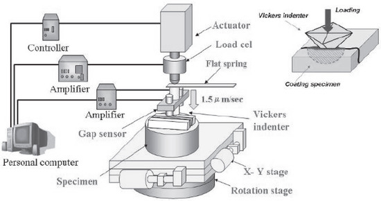 Figure 9. Schematic illustration of the instrumented indentation test equipment [39]. Reproduced with permission from S. Kuga et al., Procedia Engineering; published by Elsevier, 2011.