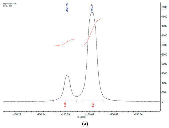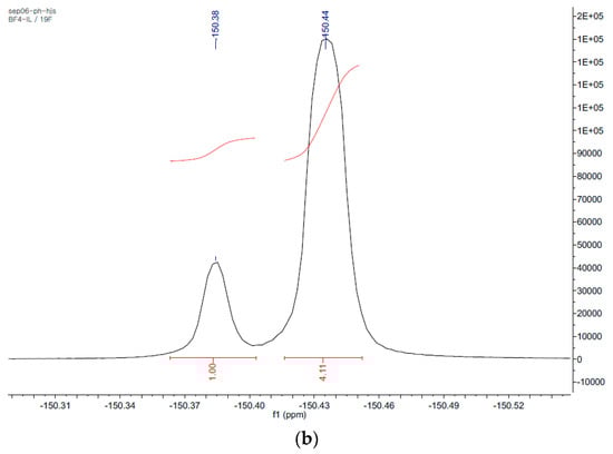 19F-NMR spectrum of sucrose crystals precipitated from BMImBF4. (A. gigas extraction solution/ILs: 3 mL/3 mL (1:1 v/v), solvent: D2O) (a) sucrose crystal, and (b) BMImBF4.