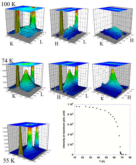 - Guerin, L.; Hebert, J.; Buron-Le Cointe, M.; Adachi, S.; Koshihara, S.; Cailleau, H.; Collet, E. Capturing one-dimensional precursors of a photoinduced transformation in a material. Phys. Rev. Lett. 2010, 105, 246101. [Google Scholar] [CrossRef] [PubMed]