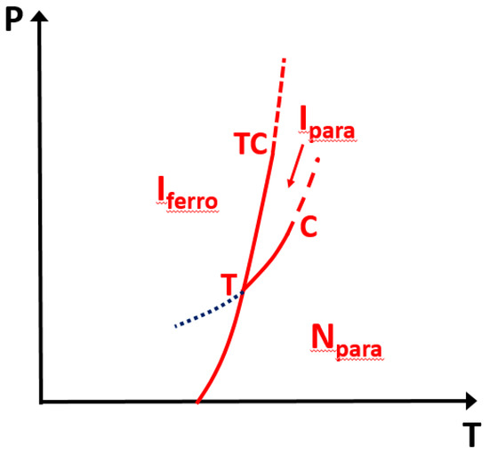 We argue that there are sufficient consistent observations to support a phase diagram quite analogous with the solid-liquid-phase transition, i.e., exhibiting when cooling above the triple point T successive totally symmetric (condensation of I pairs) and symmetry breaking (crystallization of dimerized I pairs) transition (Figure 14). Below the triple point, the two transformations take place simultaneously. Given the experimental results, we tentatively estimate the triple point to be located around 210 K and 510 MPa. The ferroelectric phase transition associated to the long range 3D polar ordering remains strongly first-order above this triple point. The discontinuity in the symmetry breaking order parameter p is evidenced by the evolution of the superstructure intensity and NQR splitting, in agreement with the jump in permittivity. However, the first-order character is reduced more and more under pressure. This presages the existence of a tricritical point TC (relatively far from the triple point) along the ferroelectric transition line, and above which the transition becomes second-order (cf. definition of a tricritical point in Appendix A). The isostructural phase transition between two paraelectric N and I phases is characterized by a jump of the order parameter q, i.e., of the quantum or statistical average of every physical quantities involved by the totally symmetric change, including the volume as for the conventional Mott transition, and without 3D polar ordering (p = 0). The first-order phase transition line ends at a critical point C. Its position is difficult to determine precisely but it might be below room temperature, since the dielectric anomaly around the maximum more and more spreads out above 700 MPa. Above the critical point, this is no more a phase transition but a supercritical regime corresponding to a crossover with a smoothly evolution of the totally symmetric order parameter q and characterized by a maximum of charge fluctuations in qc = 1/2 since they are proportional to q(1 − q).