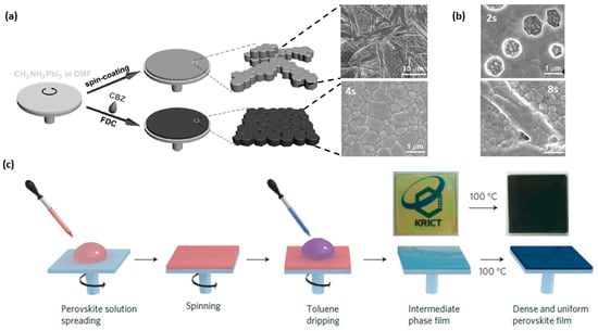 - Stranks, S.D.; Nayak, P.K.; Zhang, W.; Stergiopoulos, T.; Snaith, H.J. Formation of thin films of organic-inorganic perovskites for high-efficiency solar cells. Angew. Chem. Int. Ed. Engl. 2015, 54, 3240–3248. [Google Scholar] [CrossRef] [PubMed]