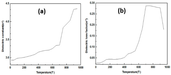 Dielectric constant (a) and loss factor (b) of Na2CO3 with temperature.