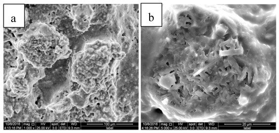 Figure 8 represents the SEM image of the roasted products. It clearly shows that the surface of roasted products covered by a moderate quantity of melt after roasted. It can also be observed that the micro thermal fragmentation of the particles in the mixture of sodium carbonate and chromite. The SEM images show the aggregation of the particles with some pores.