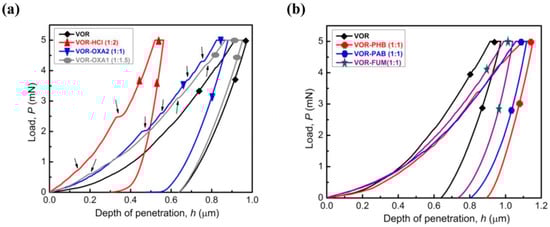 Representative P−h curves obtained on voriconazole and its (a) salts and (b) cocrystals. (Reproduced with permission from Elsevier, Reference 93).