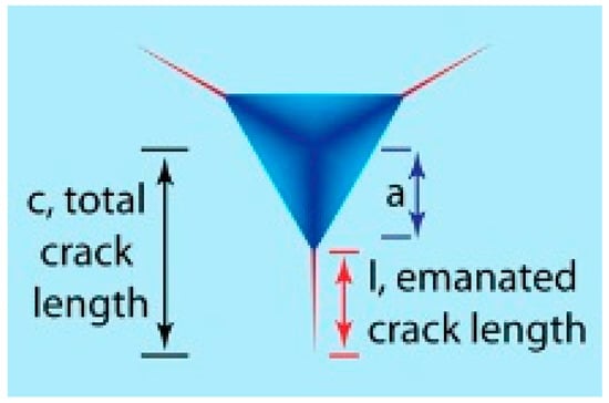 - Lawn, B.R.; Evans, A.G.; Marshall, D.B. Elastic/Plastic indentation damage in ceramics: The median/radial crack system. J. Am. Ceram. Soc. 1980, 63, 574–581. [Google Scholar] [CrossRef]