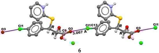 Halogen bonds in 6 (shown as dashed purpura lines).