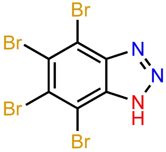 - Zien, P.; Duncan, J.S.; Skierski, J.; Bretner, M.; Litchfield, D.W.; Shugar, D. Tetrabromobenzotriazole (TBBt) and tetrabromobenzimidazole (TBBz) as selective inhibitors of protein kinase CK2: Evaluation of their effects on cells and different molecular forms of human CK2. Biochim. Biophys. Acta 2005, 1754, 271–280. [Google Scholar] [CrossRef] [PubMed]