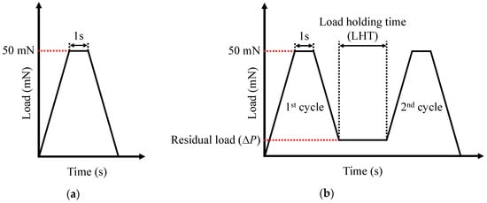 Nanoindentation experimental protocols: (a) single mode; (b) double cyclic mode.