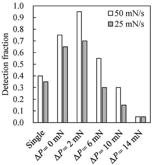 Detection fraction of r8-Ge under various experimental conditions (LHT = 5 s) (no detection under 10 mN/s).