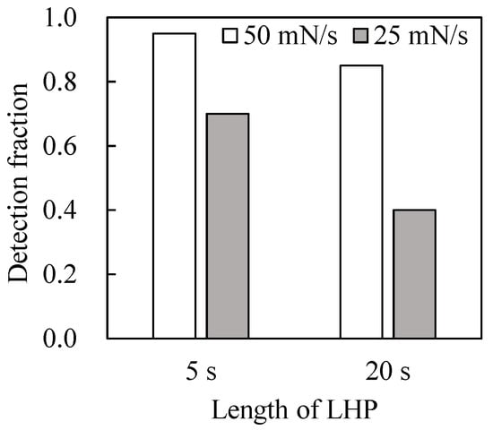 Detection fraction of r8-Ge under different LHT (∆P = 2 mN, loading/unloading rate of 50 mN/s).