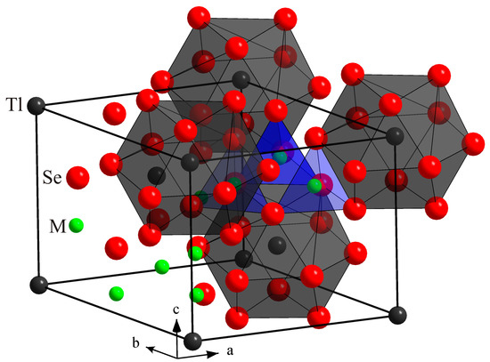 - Levytskyy, V.; Babizhetskyy, V.; Piskach, L.; Parasyuk, O. Crystal structure of new quaternary selenide TlInGe2Se6. In Proceedings of the VIII International Workshop “Relaxed, Nonlinear and Acoustic Optical Processes and Materials, Lutsk–Lake Svityaz, Ukraine, 1–4 June 2016; pp. 51–53. [Google Scholar]