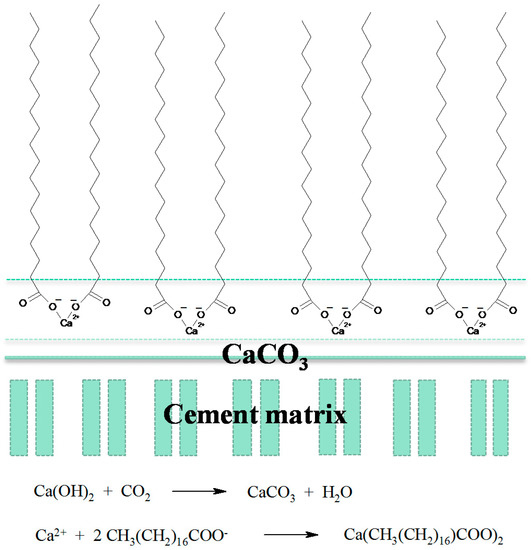 Schematic of the stearate molecules on CaCO3 in cement matrix.