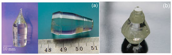 Similarly, nSLN crystals (nSLN_K) were also grown using K2O as solvent with similar growth conditions and parameters except for the rotation rates, which were marginally higher (20–5 rpm) in this case (Figure 3b).
