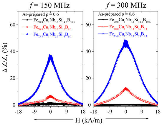 As mentioned in the introduction, the GMI effect is one of the most promising properties of soft magnetic materials [14,15,16,17].