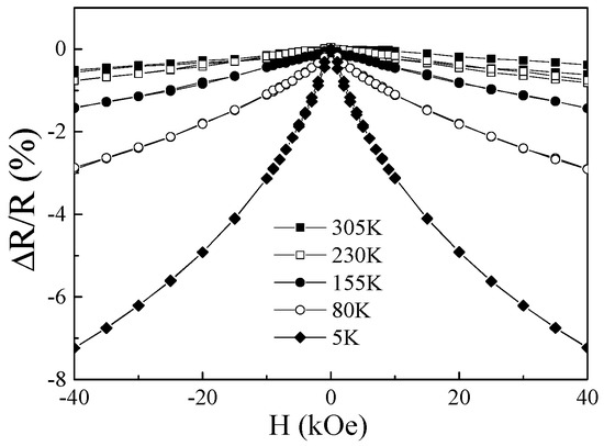 Magnetic properties have been measured either using a Physical Property Measurement System (PPMS) device for high magnetic field measurements (up to 90 kOe), and the induction method (low-field hysteresis loops analysis) described elsewhere [10,39]. Magneto-transport properties have been evaluated using the PPMS device in the temperature range of 5–300 K.