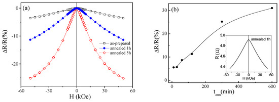 - Berkowitz, A.E.; Mitchell, J.R.; Carey, M.J.; Young, A.P.; Rao, D.; Starr, A.; Zhang, S.; Spada, F.E.; Parker, F.T.; Hutten, A.; Thomas, G. Giant magnetoresistance in heterogeneous Cu–Co and Ag–Co alloy films. J. Appl. Phys. 1993, 73, 5320–5326. [Google Scholar] [CrossRef]