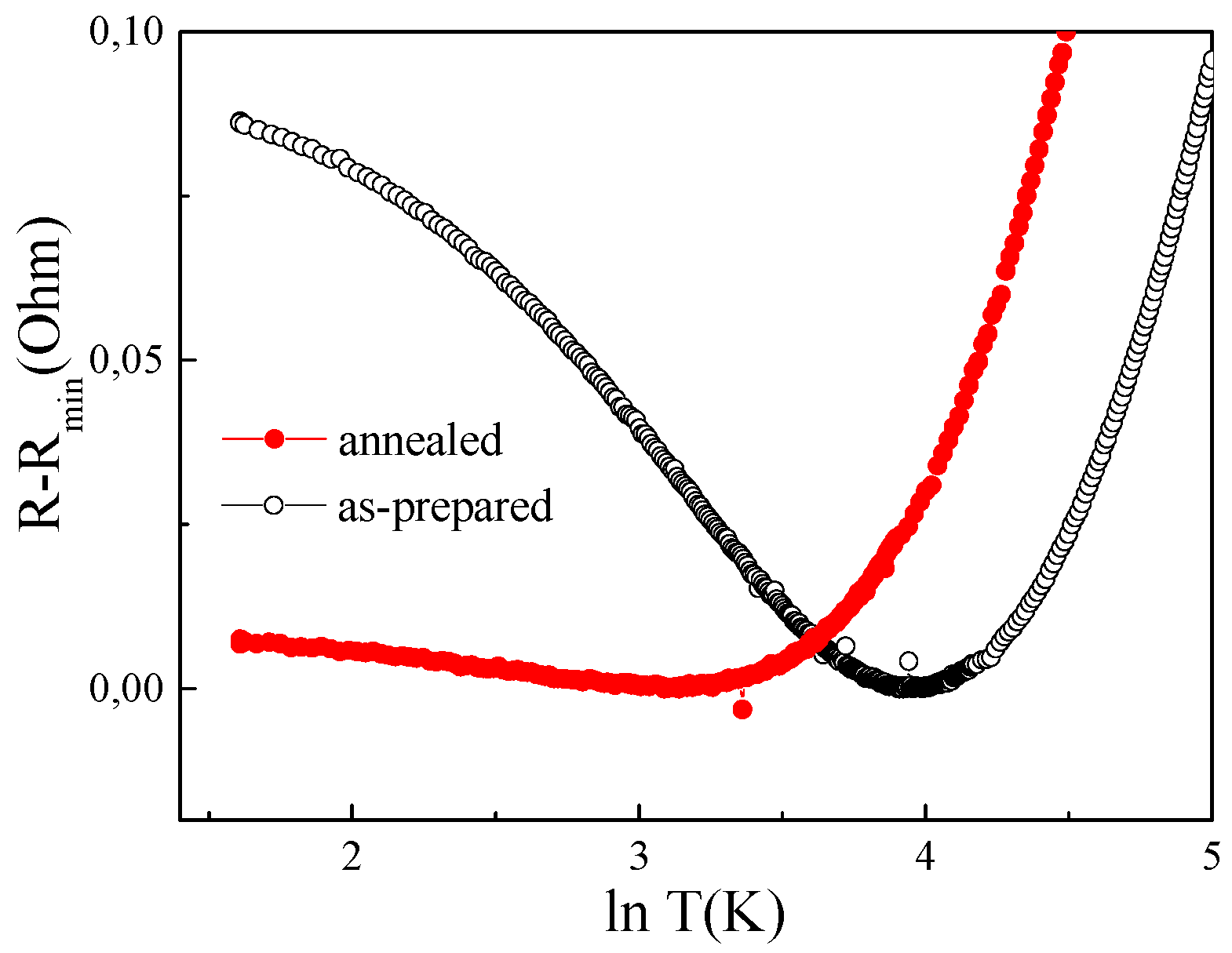 - Shirakawa, K.; Fukamichi, K.; Kaneko, T.; Masumoto, T. Electrical resistivity minima of Fe-(Ni, Co)-Zr amorphous alloys. J. Phys. F Met. Phys. 1984, 14, 1491–1499. [Google Scholar] [CrossRef]