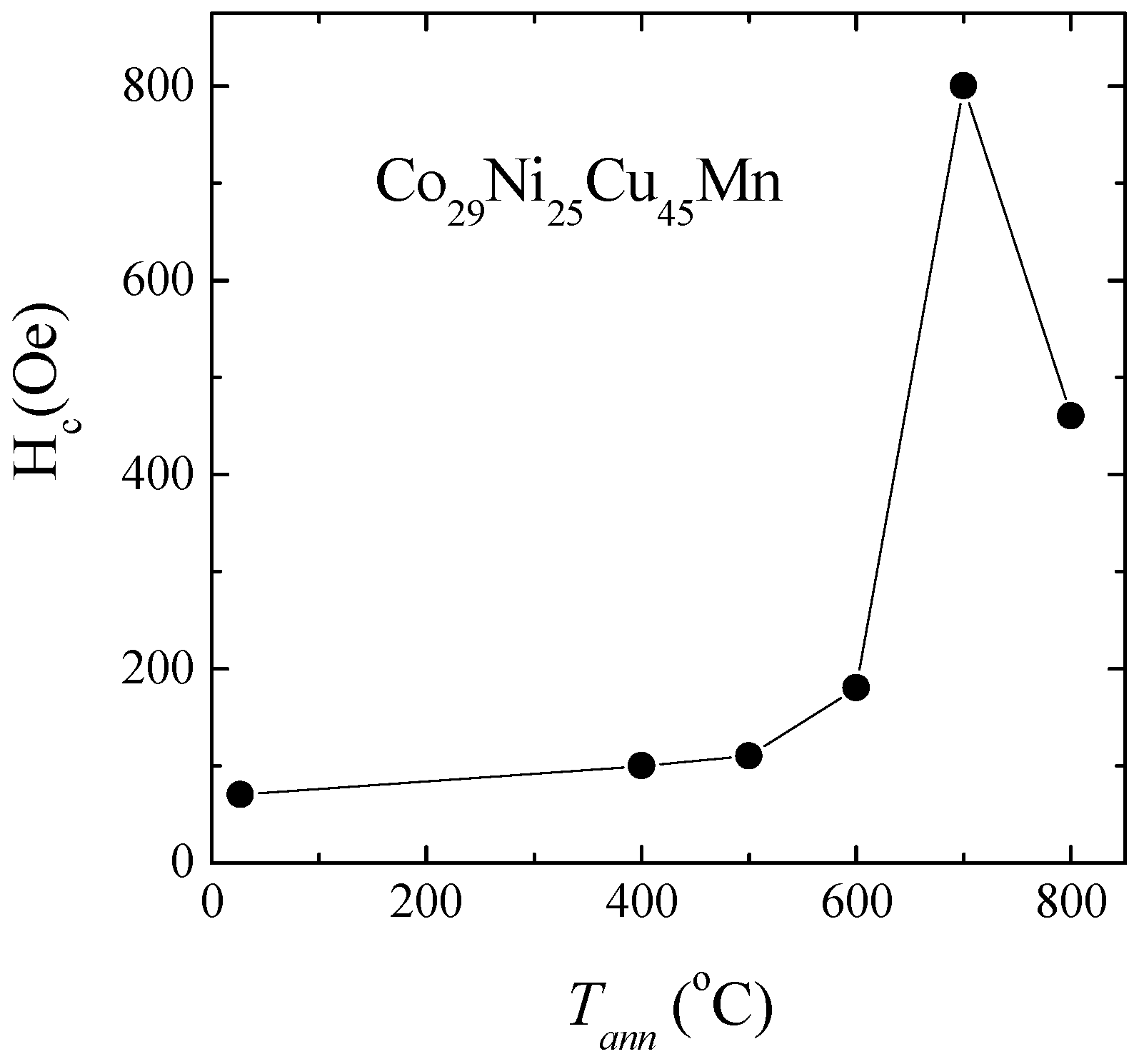 - Škorvánek, I.; Švec, P.; Marcin, J.; Kováč, J.; Krenický, T.; Deanko, M. Nanocrystalline Cu-free HITPERM alloys with improved soft magnetic properties. Phys. Stat. Solidi A 2003, 196, 217–220. [Google Scholar] [CrossRef]