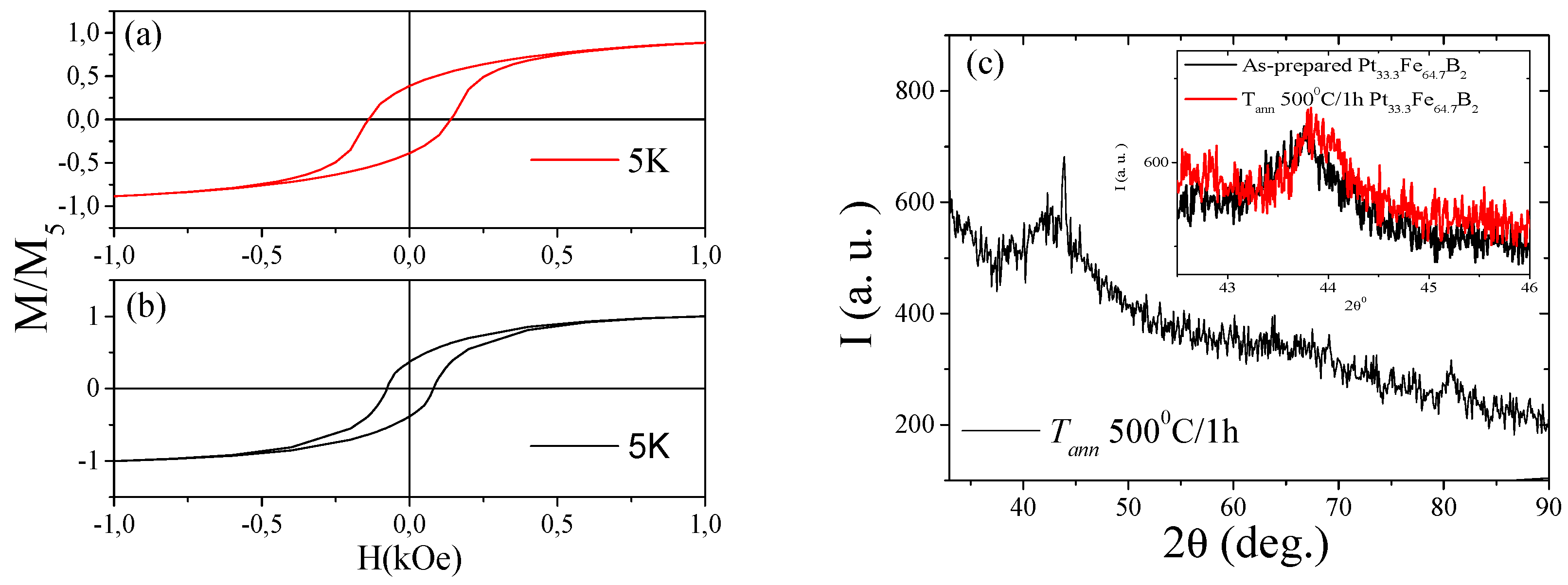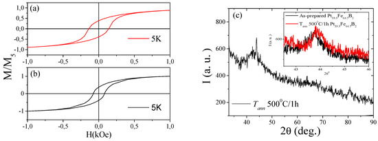 - Ziólkowski, G.; Chrobak, A.; Randrianantoandro, N.; Klimontko, J. Phase Structure and Magnetic Properties of Fe-Nb-B-Pt Type of Bulk Nanocrystalline Alloys. Acta Phys. Pol. A 2014, 126, 174–175. [Google Scholar] [CrossRef]