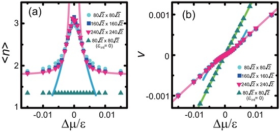 where is the number of lattice points on the square lattice. The Andreev free energy calculated using the DMRG method is shown in Figure A1a as a function of for . It should be noted that the profile of the Andreev free energy is similar to the ECS , where , , and λ represents the Lagrange multiplier related to the crystal volume.