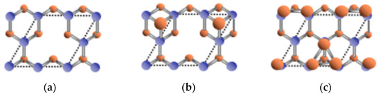 - Yamauchi, J.; Tsukada, M.; Watanabe, S.; Sugino, O. First-principles study on energetics of c-BN(001) reconstructed surfaces. Phys. Rev. B 1996, 54, 5586–5603. [Google Scholar] [CrossRef]