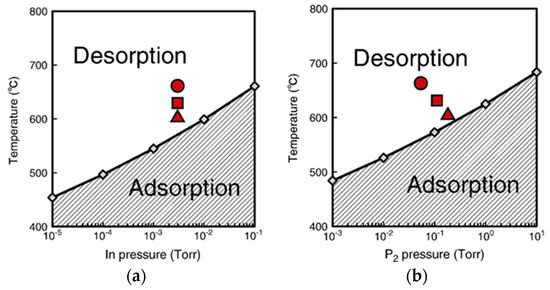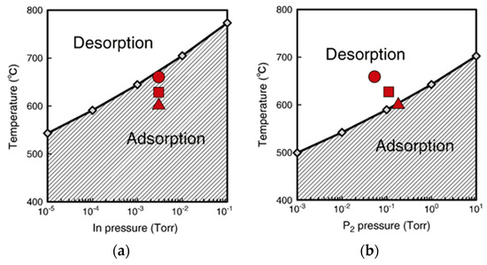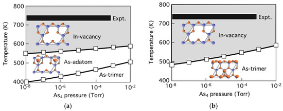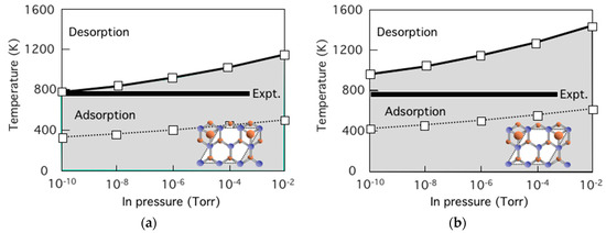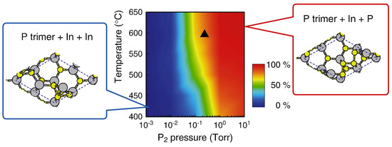 - Yamashita, T.; Akiyama, T.; Nakamura, K.; Ito, T. Theoretical investigation on temperature and pressure dependence of structural stability of InP thin layers grown on InP(111)A surface. Surf. Sci. 2013, 610, 16–21. [Google Scholar] [CrossRef]