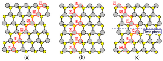 - Glas, F. A simple calculation of energy changes upon stacking fault formation or local crystalline phase transition in semiconductors. J. Appl. Phys. 2008, 104, 093520. [Google Scholar] [CrossRef]
