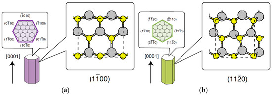 - Akiyama, T.; Obara, D.; Nakamura, K.; Ito, T. Reconstructions on AlN nonpolar surfaces in the presence of hydrogen. Jpn. J. Appl. Phys. 2012, 51, 048002-1-2. [Google Scholar] [CrossRef]