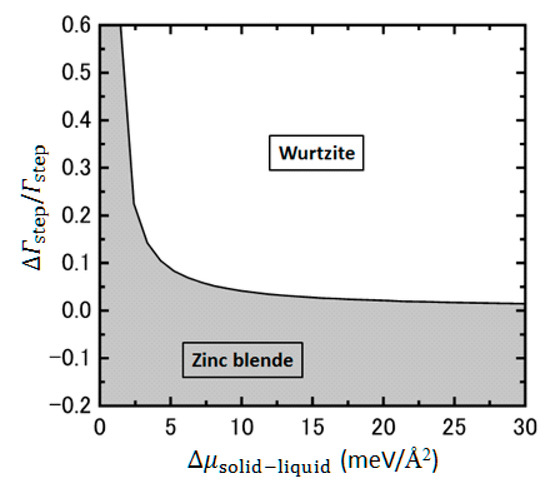 - Yamashita, T.; Akiyama, T.; Nakamura, K.; Ito, T. Effects of facet orientation on relative stability between zinc blende and wurtzite structures in group III–V nanowires. Jpn. J. Appl. Phys. 2010, 49, 55003. [Google Scholar] [CrossRef]