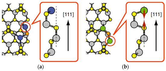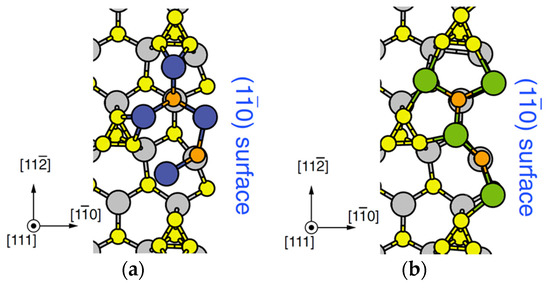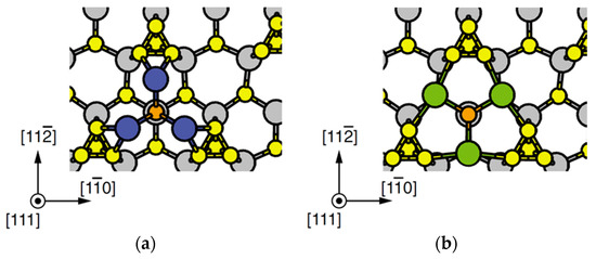 - Tatematsu, H.; Sano, K.; Akiyama, T.; Nakamura, K.; Ito, T. Ab initio-based approach to initial growth processes on GaAs(111)B-(2 × 2) surfaces: Self-surfactant effect of Ga adatoms revisited. Phys. Rev. B 2008, 77, 233306-1-4. [Google Scholar] [CrossRef]