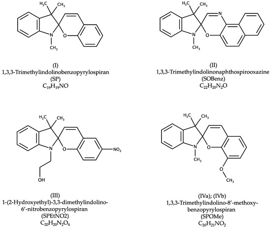 6], restricted to organic and not polymeric structures yielded no match for 1,3,3-Trimethylindolinobenzopyrylospiran (SP) nor 1,3,3-Trimethylindolino-8′-methoxybenzopyrylospiran (SPOMe). Only one hit was found for both 1,3,3-Trimethylindolinonaphtospirooxazine (SOBenz; CSD Refcode JIZJOR/01/02 [