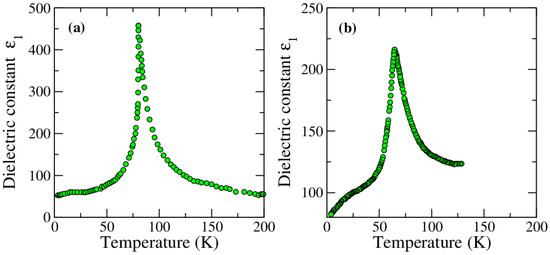 Besides vibrational and structural analysis, the measurement of the dielectric constant is an additional important tool to investigate NIT, as shows a divergent-like peak, or cusp anomaly, characteristic of ferroelectric or antiferroelectric transitions. The dielectric constant anomaly of TTF–CA [16] and DMeTTF–CA [18] is shown in Figure 11. Notice the different full-scale value in the two cases, the cusp anomaly of TTF–CA being about twice of the DMeTTF–CA one. The peak divergence occurs precisely at in both cases. The dielectric anomaly was initially explained as due to the quantum motion of NIDW [16]. Modern polarization theory offers an alternative explanation [33], although the low-frequency charge-oscillations induced by the soft mode have been shown to give by far the largest contribution [33,39].