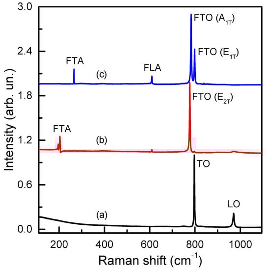 Raman spectra of (a) cubic 3C-SiC crystals and (b,c) hexagonal 4H-SiC crystals of different morphologies.