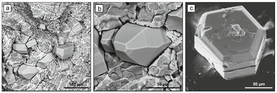 - Khokhryakov, A.F.; Sokol, A.G.; Borzdov, Y.M.; Palyanov, Y.N. Morphology of diamond crystals grown in magnesium-based systems at high temperatures and high pressures. J. Cryst. Growth 2015, 426, 276–282. [Google Scholar] [CrossRef]